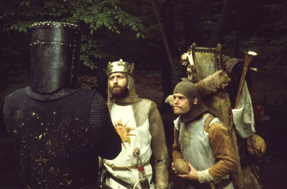 Kultna skupina Monty Python se v tej komediji brez zadržkov norčuje iz srednjeveških mitov, filmskih klišejev in celo iz samega filmskega jezika.