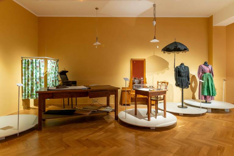 V Mestnem muzeju v Ljubljani je trenutno na ogled razstava Od korzeta do žaketa omogoča dragocen vpogled v stoletje življenja ljubljanskih meščanov, njihovega oblačilnega videza ter spoznanje s podobami mojstrskih delavnic, kjer so spretni mojstri in mojstrice obrti ustvarjali modne čudeže iz blaga.