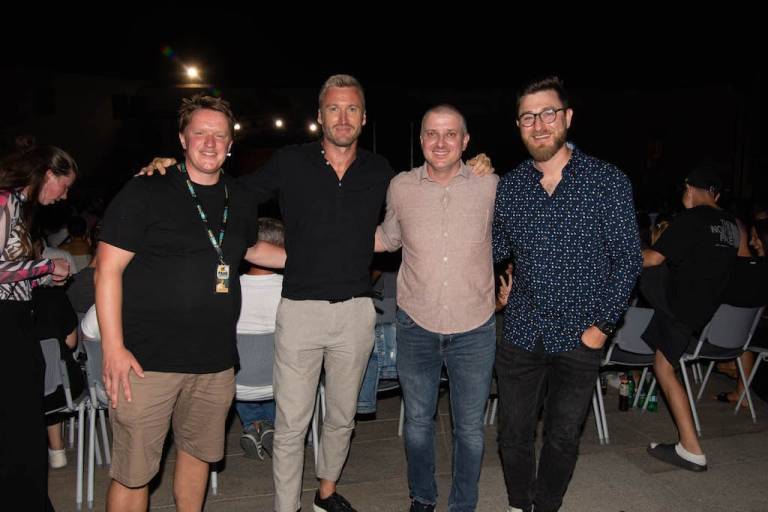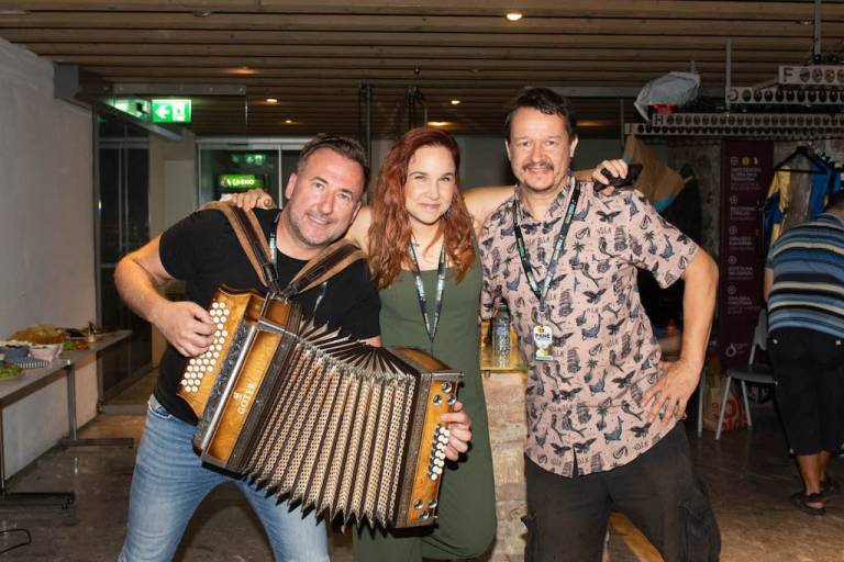 Tam so bili člani skupine Pantaloons, duet freekind, Maja Keuc in Zala Smolnikar pa tudi radijca Ondina Kerec in Nejc Poljanec. Aleksandru Pozveku sta glasno ploskala kolega Gregor Trebušak in Katarina Matejčič, Denisa Avdić pa si je zadnji dan počitnic popestril z ogledom predstave v družbi komikov, s katerimi pripravlja naslednjico Ićkotov.