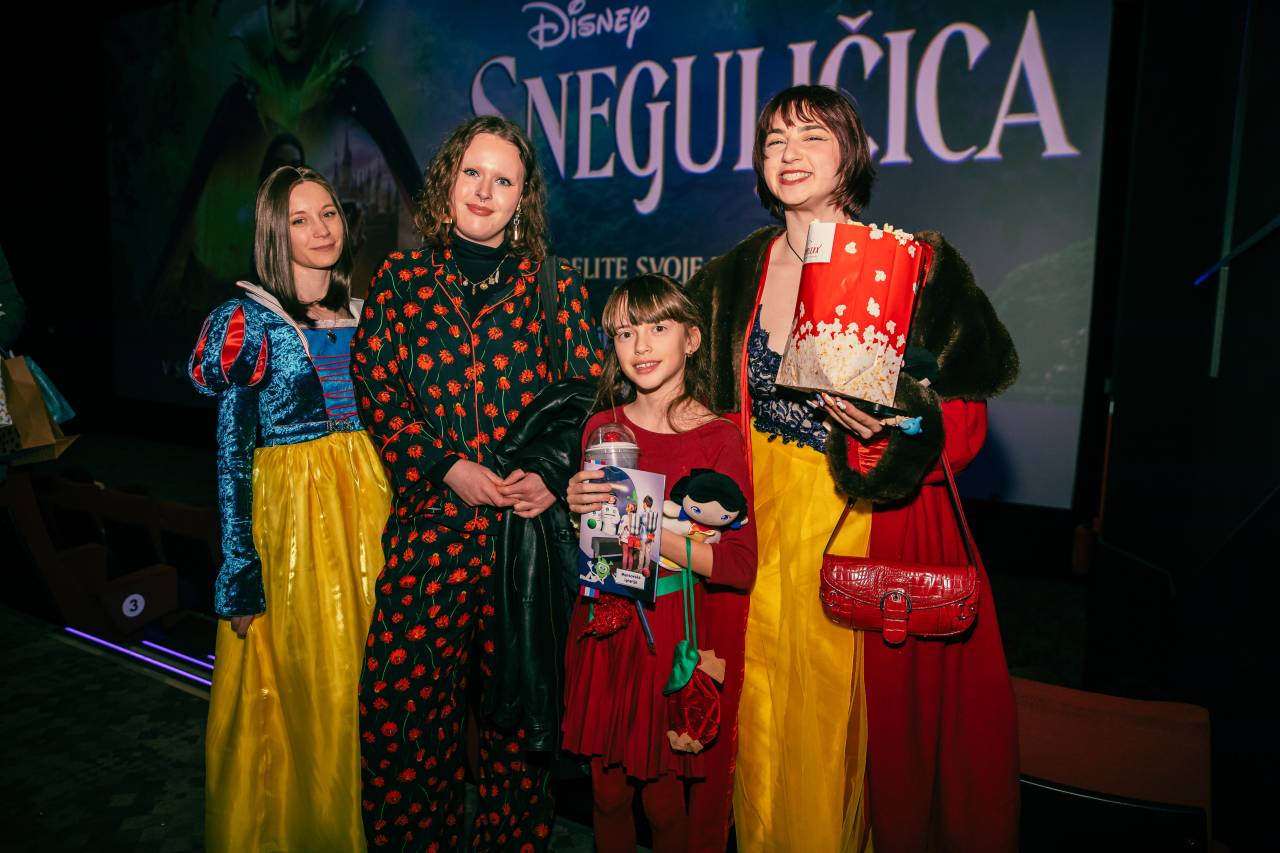 Na rdeči preprogi v ljubljanskem Cineplexxu se je zbrala sinhronizacijska ekipa Studia Ritem, ki je to zgodbo približala tudi najmlajšim generacijam, poleg njih pa tudi mnoge mlajše in starejše oboževalke Sneguljčice in številni znani obrazi, med drugimi tudi Nina Osenar s sinom, Teja Jugovic s svojo Sio, Tadeja L. Hoyos, Gaja Hribernik, Alja Glavina, Alenka Husič, Tjaša Hudolin, Katarina Zuccato, Tamara Fortuna in mnogi drugi.