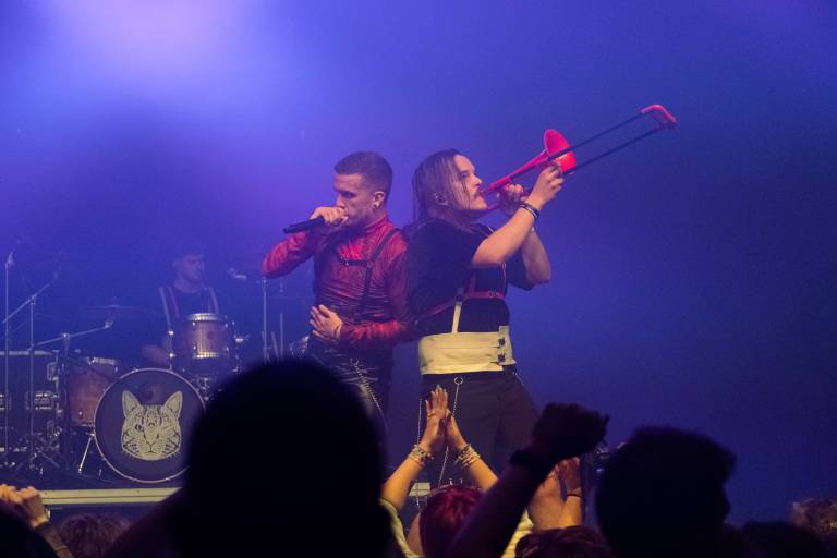 Poleg evrovizijske uspešnice je v Katedrali predstavil tudi ostale pesmi s svojega debitantskega albuma Demons Mosquitos, vključno z že izdanimi IG BOY, Biggie Boom Boom in Don't Hate Yourself, But Don't Love Yourself Too Much. Poskočne in energične pesmi so Kino Šiška spravile na noge.