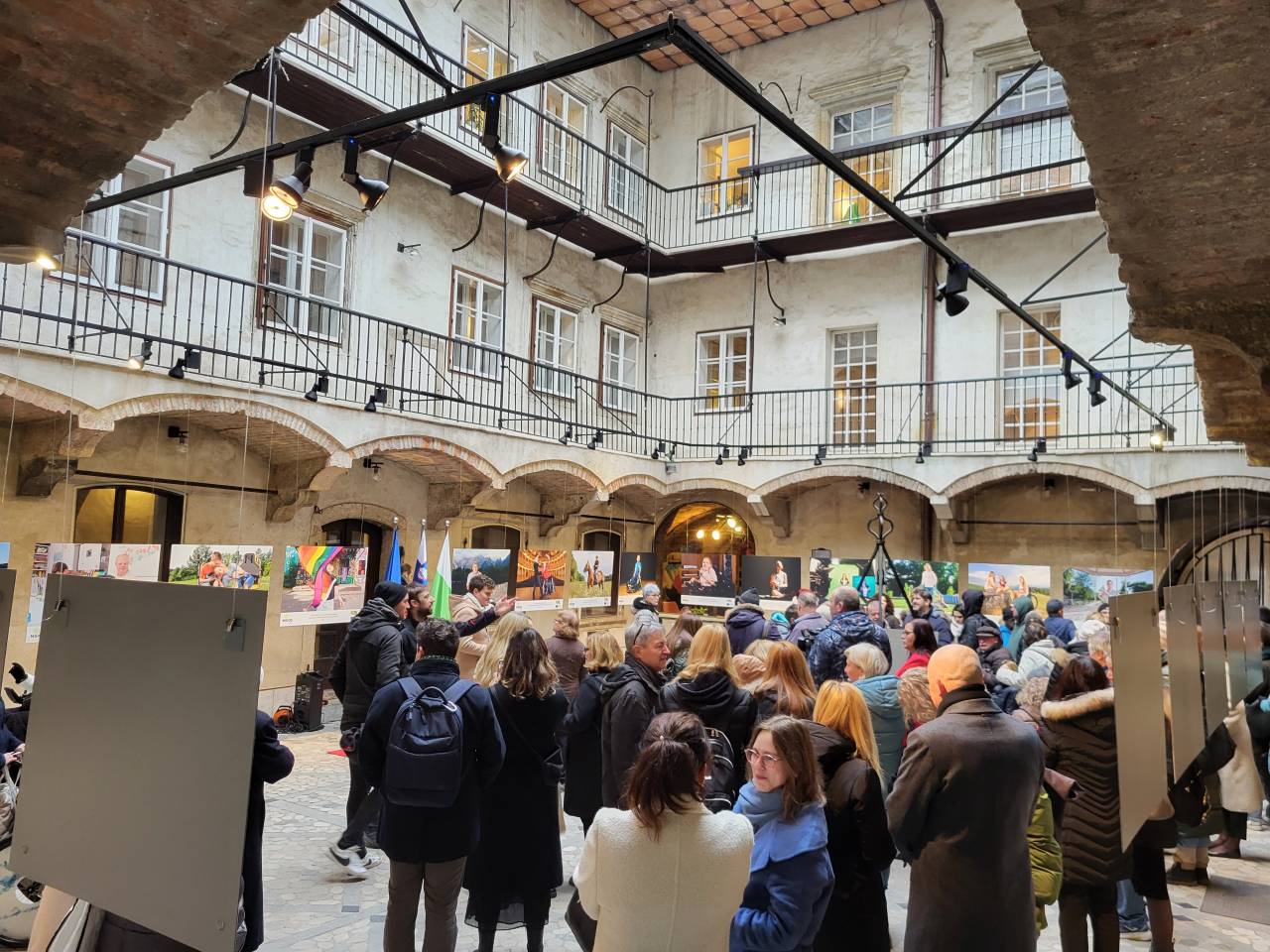 Razstavo je odprl podžupan Mestne občine Ljubljana Dejan Crnek: »Hvala, da ste si za to prekrasno razstavo izbrali naš atrij. Z razstavo je namreč kar zažarel, postal svetel, poln ljubezni, sočutja in združevanja.«