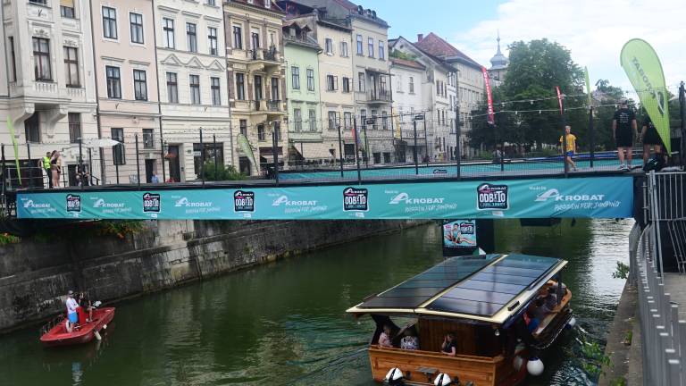 V središče Ljubljane so se danes vrnile akrobacije na največjem trampolinu na svetu, saj se je popoldne nad Ljubljanico v bližini Novega trga začel dogodek Odbito, v sklopu katerega so se mimoidoči lahko preizkusili v skokih na največjem trampolinu.