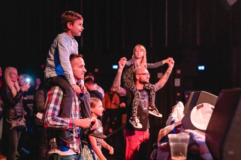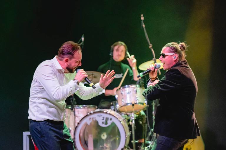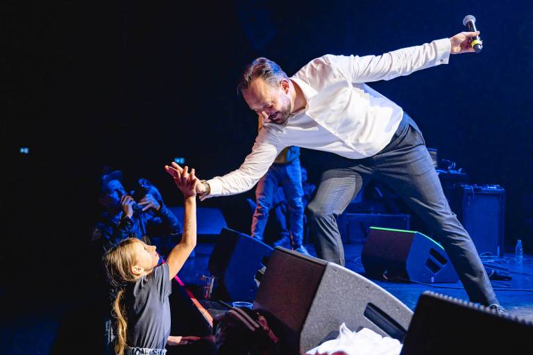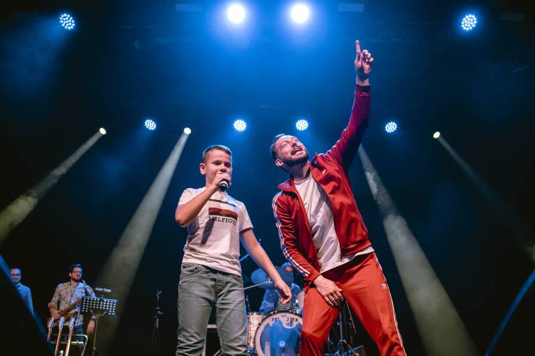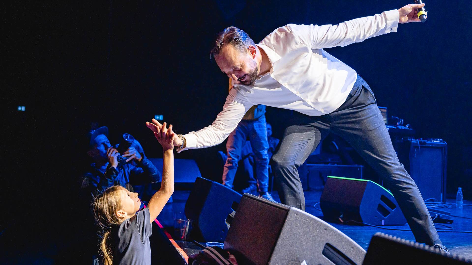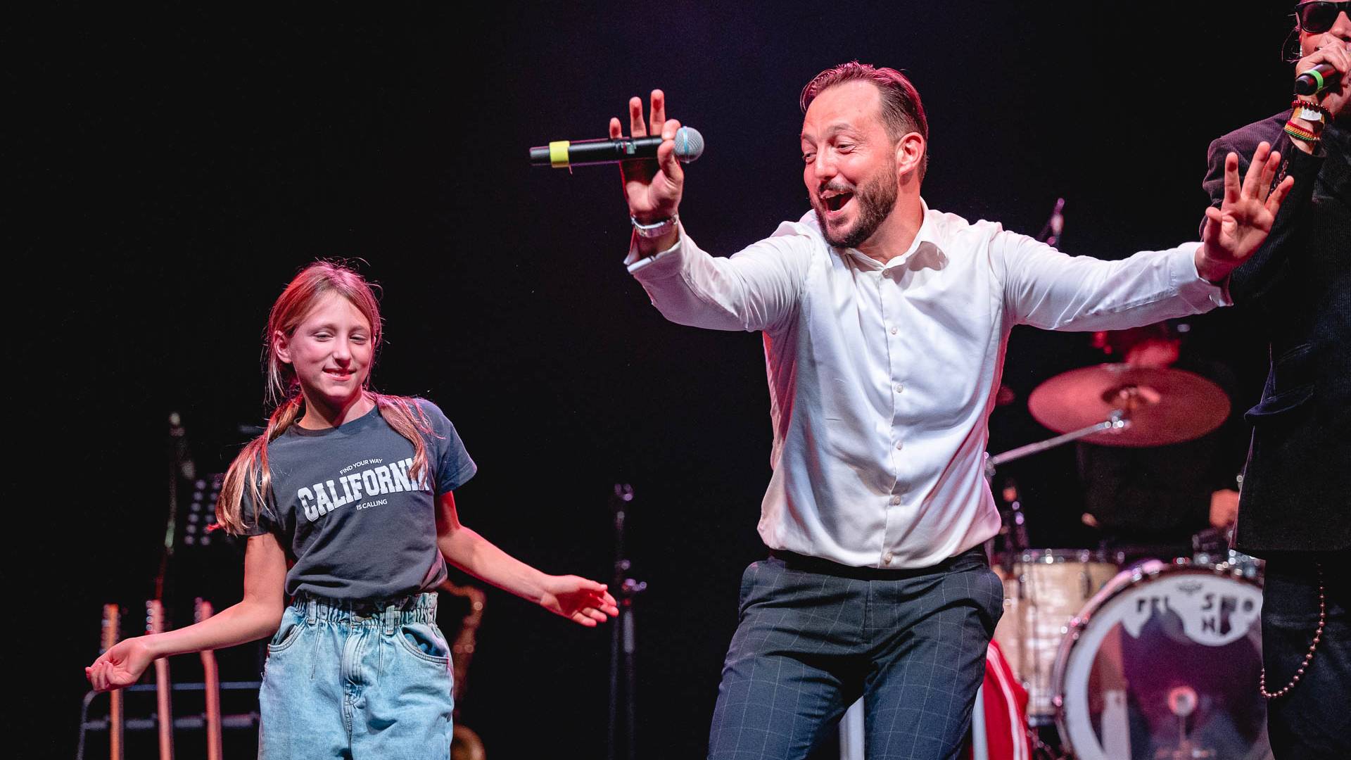 Na oder je tako ponosno stopil z zasedbo Optimisti, večer pa so popestrili tudi posebni gostje, med drugim tudi njegovi otroci.