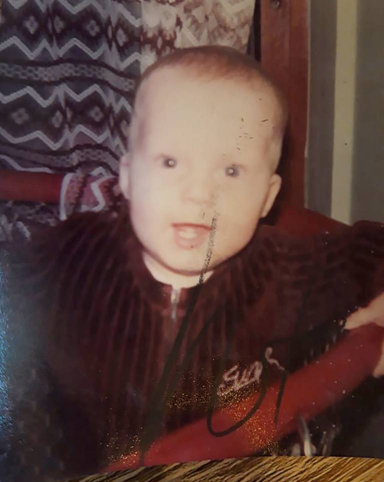 "S sestro Urško na enem redkih družinskih potepov, ki jih zaradi gostinskega načina življenja ni bilo preveč. Verjetno ob začetku študija filozofije, filozofska drža namreč precej izstopa."