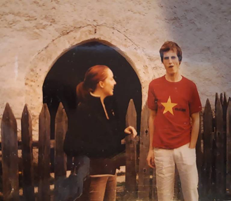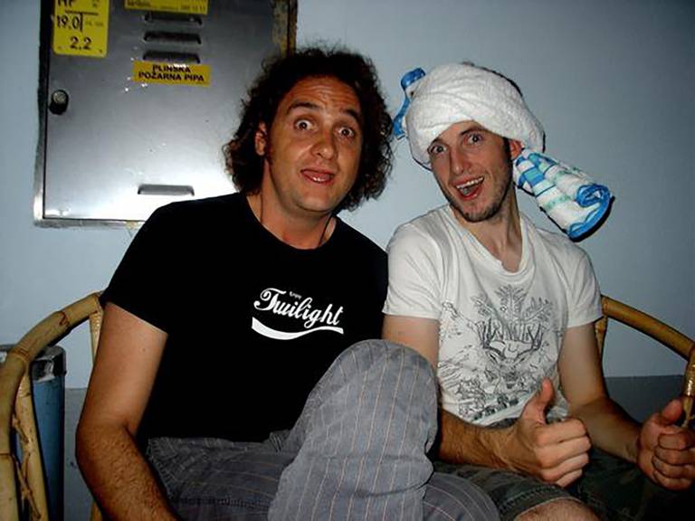 "Nekje vmes med vsemi temi peripetijami se mi je zgodila ljubezen mojega življenja. Na srečo me Erika še prenaša. Upam da lažje kot jaz gajbe Radenske na prejšnji sliki. Tukaj 'furava fensijado na maturancu' od bratranca Roka."