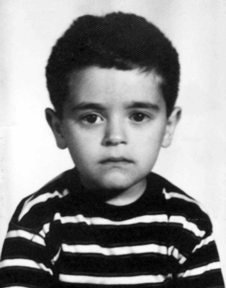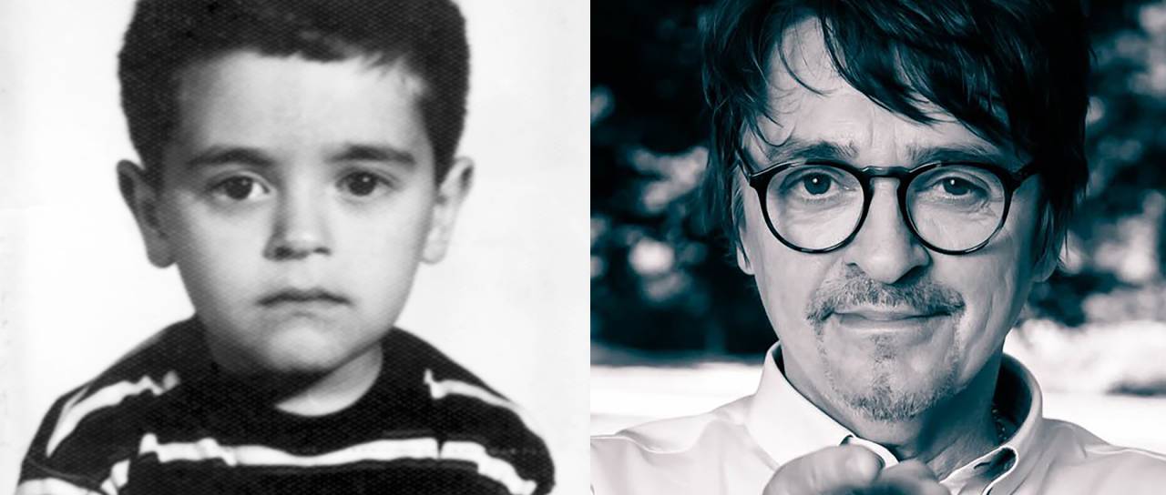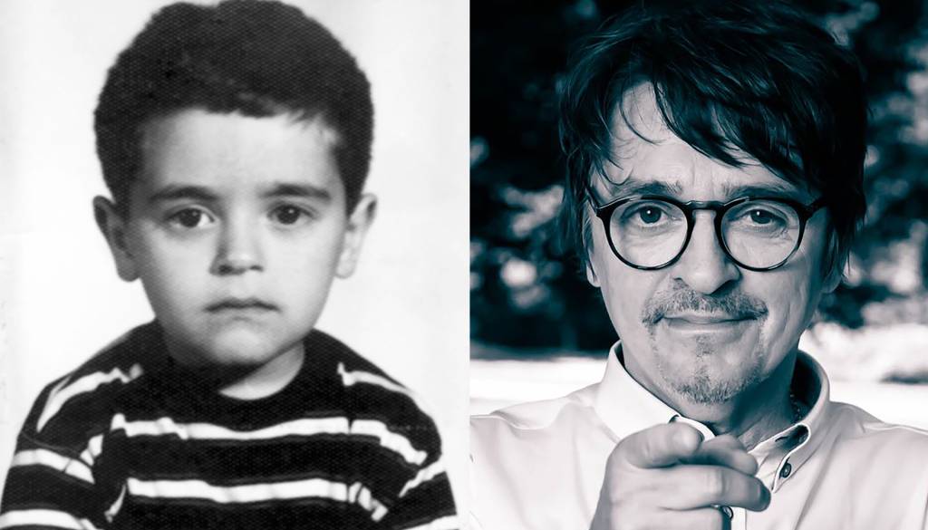"V fotokabini nekje v stari Gorici na obisku pri teti Nini. Sicer ni bila moja teta, ampak najboljša prijateljica stare mame, ki nas je pogosto obiskovala v Idriji in nam nosila dobrote iz 'gnilega zahoda.' (smeh) Bil sem precej miren otrok, ki se je znal zamotiti sam, najraje z risanjem stripov, prebiranjem knjig o letalih iz druge svetovne vojne in zbiranjem modelčkov, ki sem jih sestavljal sam. Nekako vzporedno je prihaja do mene tudi glasba iz vseh vetrov. Mama je rada poslušala narodno-zabavno, ata je bil pristaš festivalskih popevk Jugoslavije, sestra pa Beatlov in The Rolling Stones. Vesel sem, da se me je navzel njen okus za muziko."