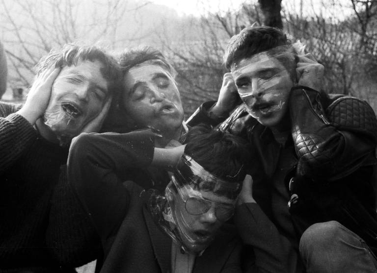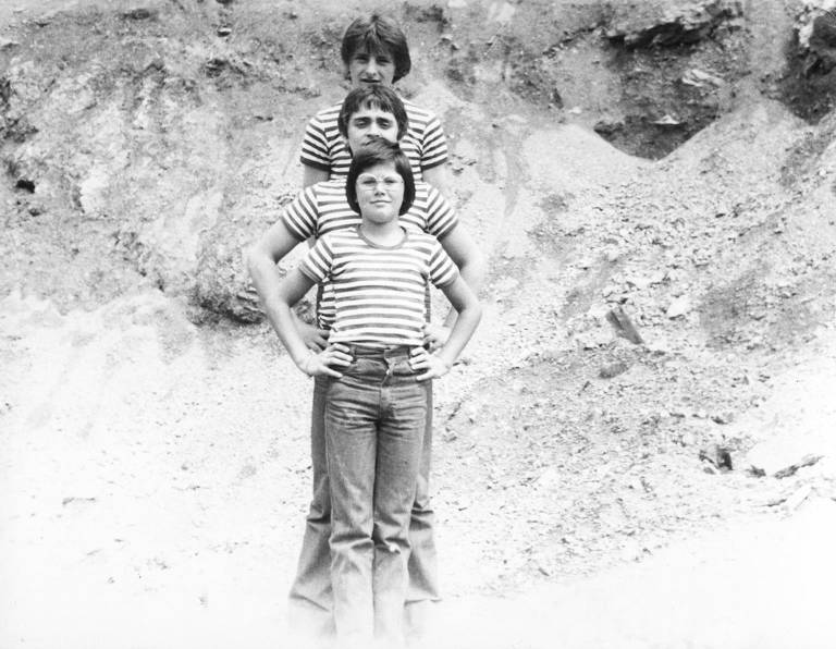"Kuzle (1980-1982) nekega poletnega popoldneva pred Gimnazijo Jurija Vege v Idriji. 'Tough guys' ... ali pa smo tako želeli izgledati."