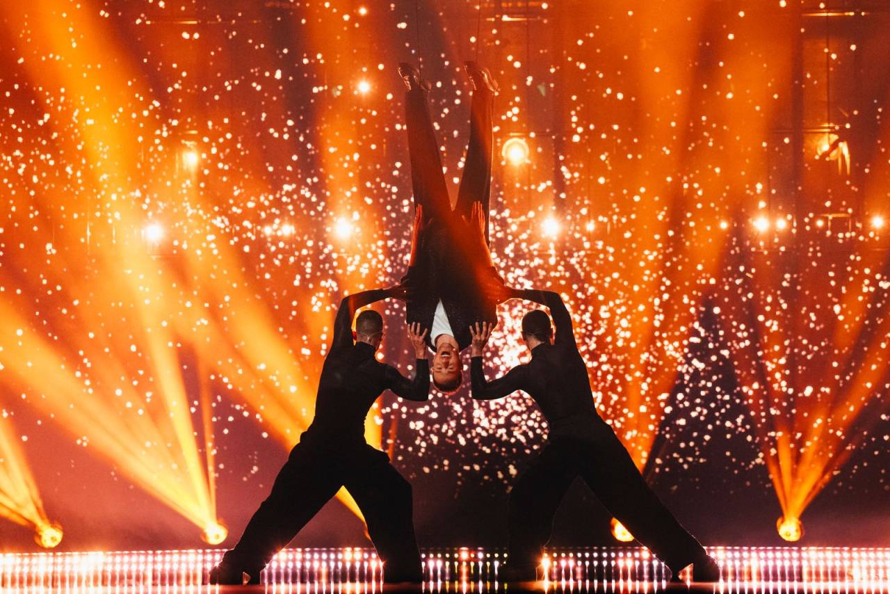 Norveški predstavnik Kyle je nastop začel sam, kasneje so se mu pri refrenu pesmi Lighter pridružili plesalci. Oder je preplavil, Kyle pa je v svojem nastopu združil petje in ples.