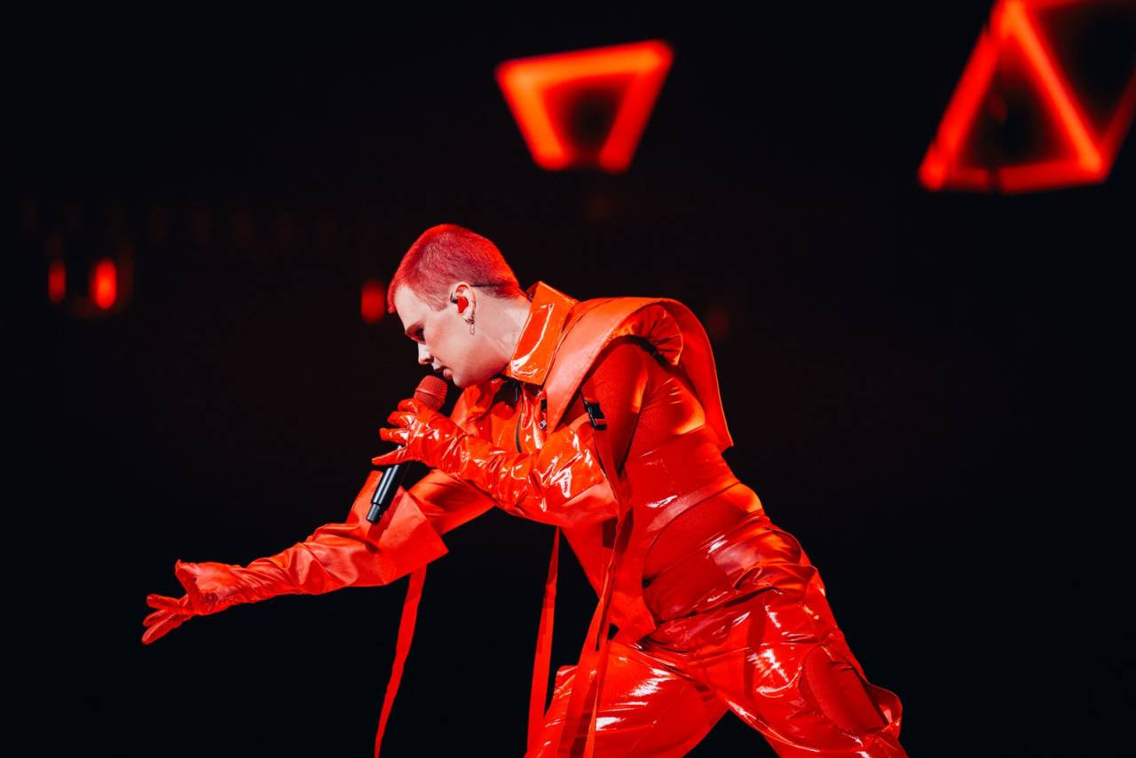 Po našem predstavniku je sledil estonski predstavnik Tommy Cash in pesem Espresso Macchiato. Nastopil je z varnostniki, predolgo kravato in z obvezno skodelico kave. Nove LED-grafike so poskrbele za dodatno zabavo. V zaključku je na oder vdrla »oboževalka«, zaplesala s pevcem, nato pa so jo varnostniki odstranili.