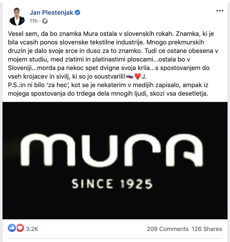 Ko se je novica razširila, se je Jan oglasil na svojem Facebook profilu. Pravi, da bo znamka, ki je bila nekoč ponos slovenske tekstilne industrije pri njem na varnem, ne izključuje pa možnosti, da bo nekoč morda "spet dvignila svoja krila."