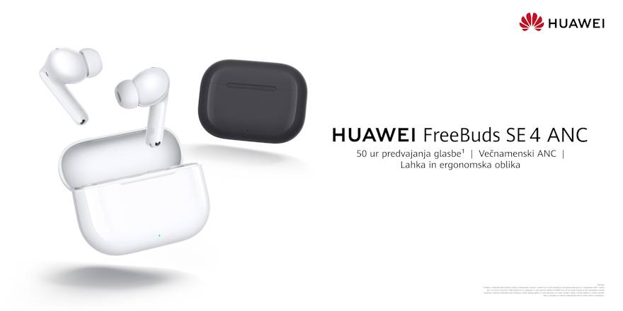 Odlične slušalke so Huawei FreeBuds SE 4 z aktivnim zmanjševanjem hrupa (ANC), ki jih v beli ali črni barvi po priporočeni ceni 59 evrov že najdete v lokalnih trgovinah ali Huawei FreeBuds 7i, ki bodo na voljo kmalu.