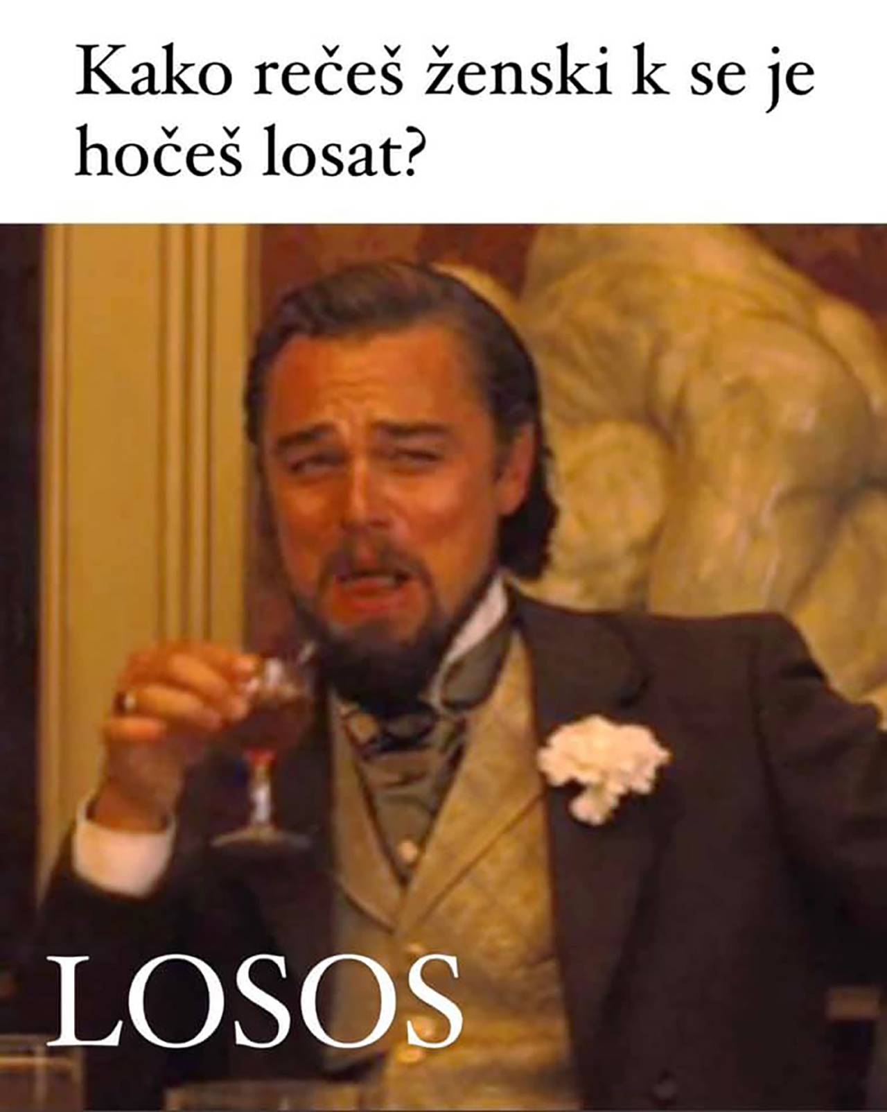 Kar nas vrne do vsebine članka: letošnji nesporni kralj memsov je vsekakor Leonardo Dicaprio, katerega nepozabni porogljivi smeh v Tarantinovi filmski mojstrovini Django brez okov (2012), je postal poligon za kreativno izražanje humorja po vsem svetu. Objav nismo prevajali v slovenščino, saj humor in poezija ob prevodu iz izvirnika hitro izgubita finese sporočilnosti. Spodaj smo izbrali nekaj najduhovitejših, a najprej si oglejmo znamenito sceno iz Django v okovih, ki je vse skupaj sprožila: