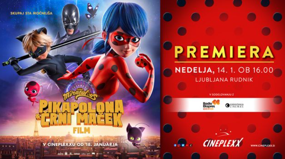 V nedeljo v Cineplexxu Ljubljana Rudnik vabijo, da se jim pridružite na premieri animirane akcijske avanture Miracoluous Pikapolonica & Črni maček, ki bo ob 16. uri.