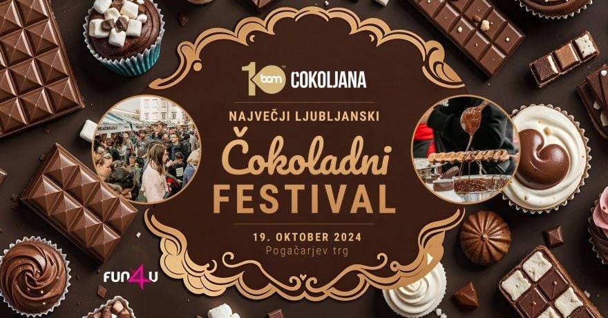 Sobota, 19. oktobra, prinaša sladko doživetje na Čokoljani, največjem čokoladnem festivalu v Ljubljani, ki bo na Pogačarjevem trgu od 8. ure dalje. Ob 11. uri bodo na voljo tudi otroške delavnice.