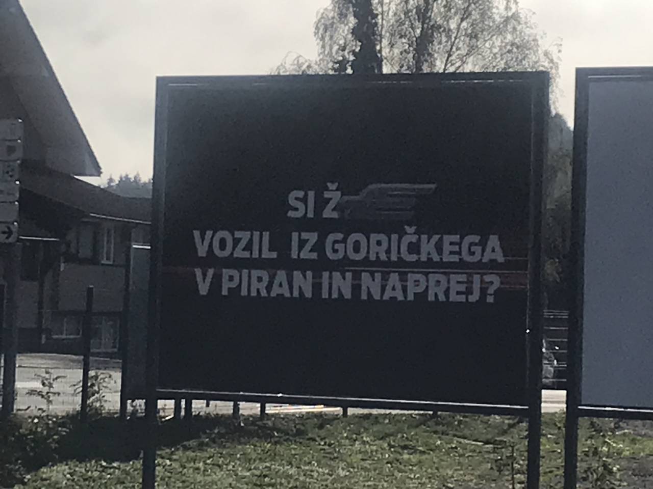 »Si že vozil iz Goričkega v Piran in naprej?« so slovnično napačno zapisali na velikem oglasnem panoju.