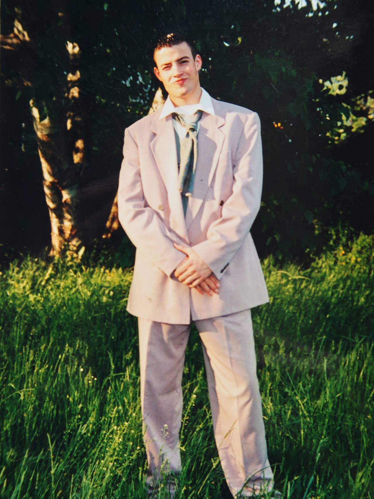 "Maturantski ples vzgojiteljske gimnazije v Ljubljani leta 1994. Tole obleko sem si sposodil, niso mi je starši kupili, zakaj pa je tako očitno prevelika pa res ne vem: mogoče v izposojevalnici ni bilo moje številke ali pa sem si jo izbral, ker mi je bila všeč, saj izgleda precej 'hiphopersko'. Na vzgojiteljski šoli sem pristal po naključju, takrat so to vse bile gimnazije in šolo so ti odredili glede na splošni uspeh in ocene v osnovni. Srednjo šolo sem obiskoval pet let. Predmet zaradi katerega sem ponavljal? Nemščina. Nikoli nisem imel pedagoških ambicij, sanjal sem, da bom pristal na Fakulteti za šport. Na koncu sem po srednji šoli opravil izpit za športnega maserja, kar je bila vsaj delna povezava s športom."