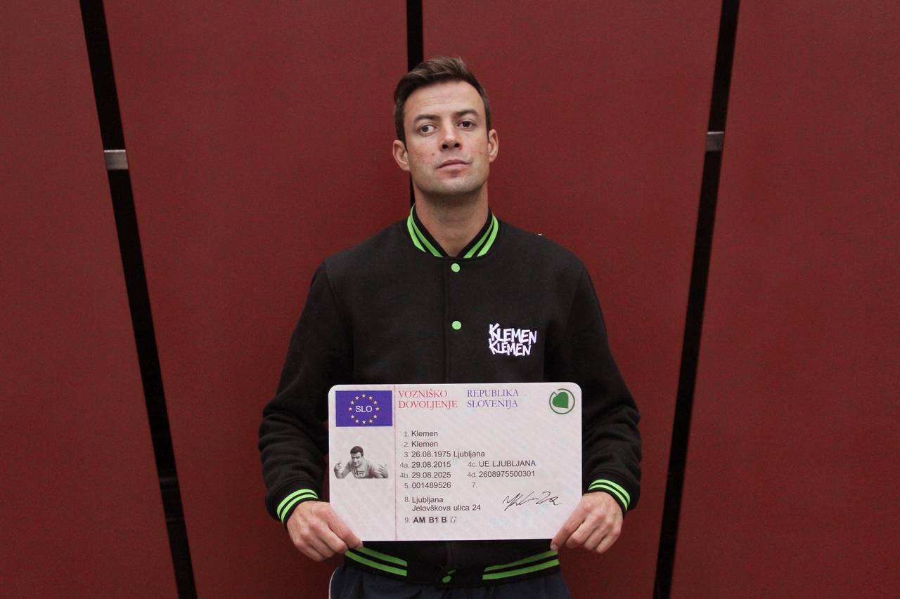 "Tale je z obdobja promocije albuma S3P leta 2015. To vem, ker poziram v velikanskim vozniškim dovoljenjem, ki so mi ga prijatelji podarili za štiridesetletnico, skupaj z vrednostnim bonom za opravljanje vozniškega izpita. Še vedno nimam izpita, ob polnoletnosti me ni mikalo, da bi ga imel, potem pa se človek na to nekako privadi. Nekoč ga bom opravil, če ne zaradi drugega zato, da se bom lahko prosto potepal po Sloveniji in raziskoval manjše kraje, ki jih ne poznam."