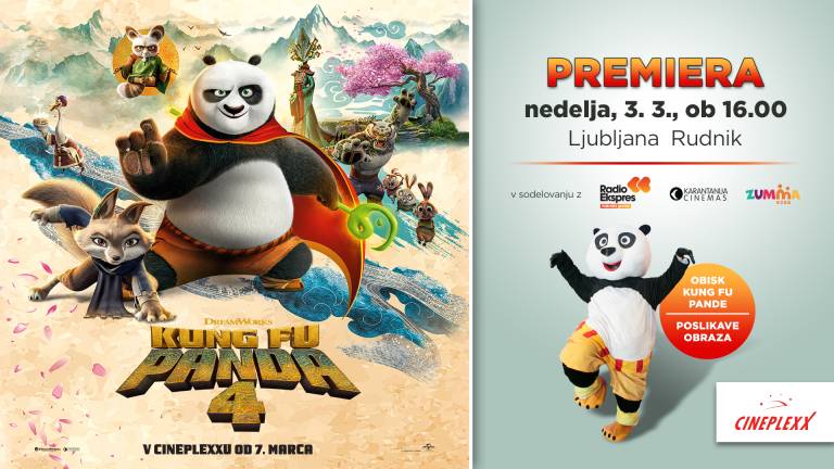 Poleg premierne projekcije ob 16.00, bo v Ljubljani ob 16.30 še dodatna projekcija Kung Fu Panda 4.