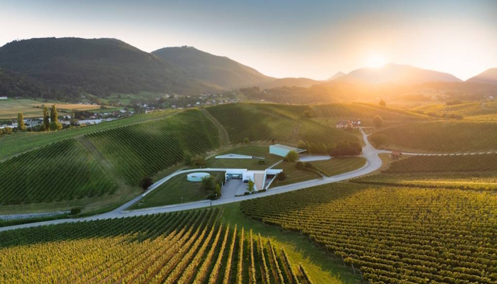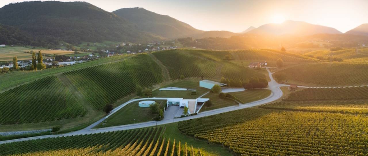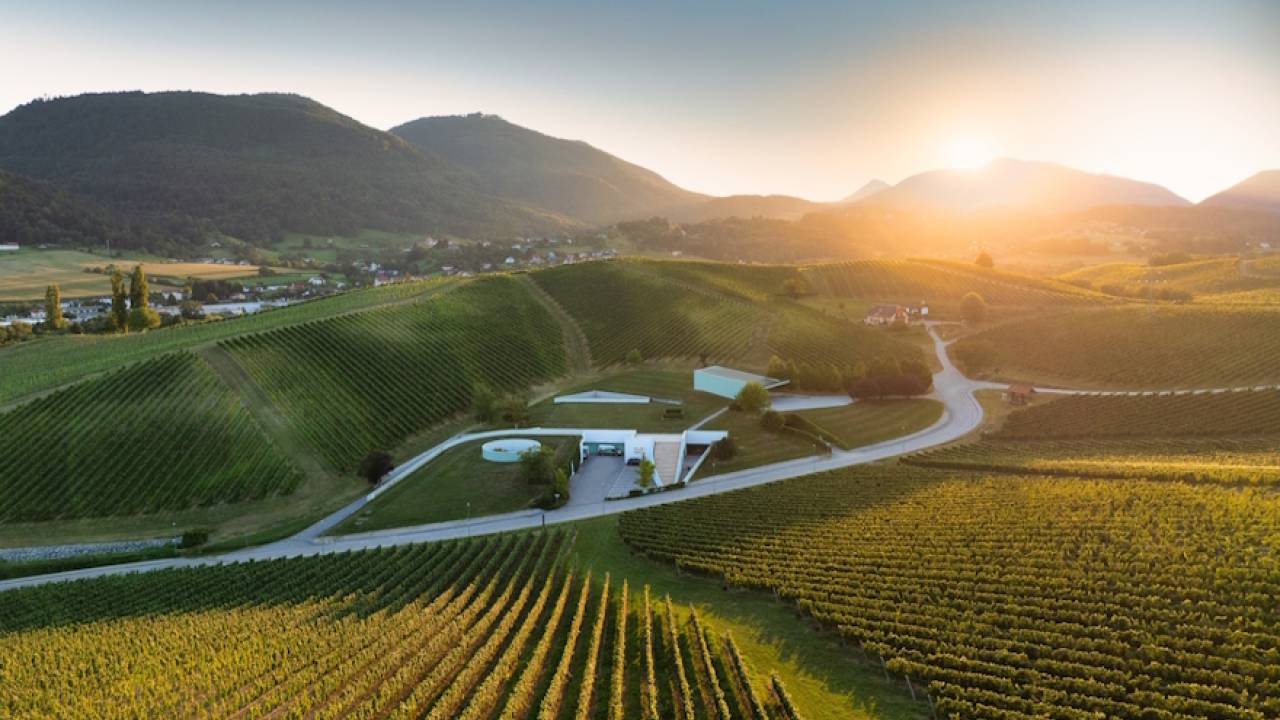 Ena najsodobnejših vinskih kleti v tem delu Evrope je hkrati tudi arhitekturni biser, ki se neopazno zliva z okoliško krajino. Zaznamujejo jo travnate strehe, preproste linije in materiali, ki dihajo z zemljo. Ni presenetljivo, da je bila klet nagrajena za arhitekturno skladnost in trajnostno zasnovo.