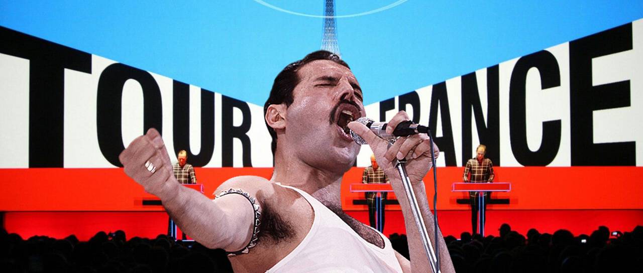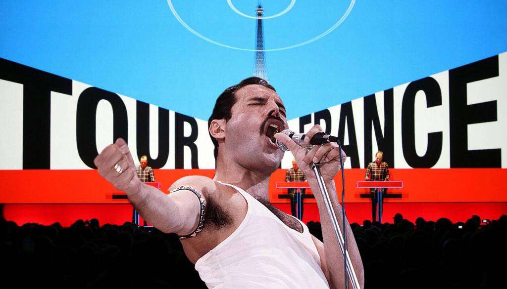Kraftwerk so v sedemdesetih kolektivno kolesarili, šlo je za način življenja, saj nikoli niso padli v klišejsko kategorijo seksa, drog in rock ‘n’ rolla. Ustanovni član Ralf Hütter je še pred nekaj leti na turneji večkrat potoval od mesta do mesta na biciklu, medtem ko se je ostala ekipa prevažala s turnejskim avtobusom. Ravno ritmični zvok premikajočih zobcev in dihanja je po ogledu Tour de France navdihnil eno njihovih najbolj znanih skladb po kateri so poimenovali album iz leta 1983. Pionirji elektro glasbe, ki so veljali za glasbeno kuliso nemškega nezaustavljivega gospodarsko tehničnega razvoja v sedemdesetih, so ustvarili soundtrack v katerem se (tako kot večkrat) prej prepletata človek in njegove tehnične stvaritve.