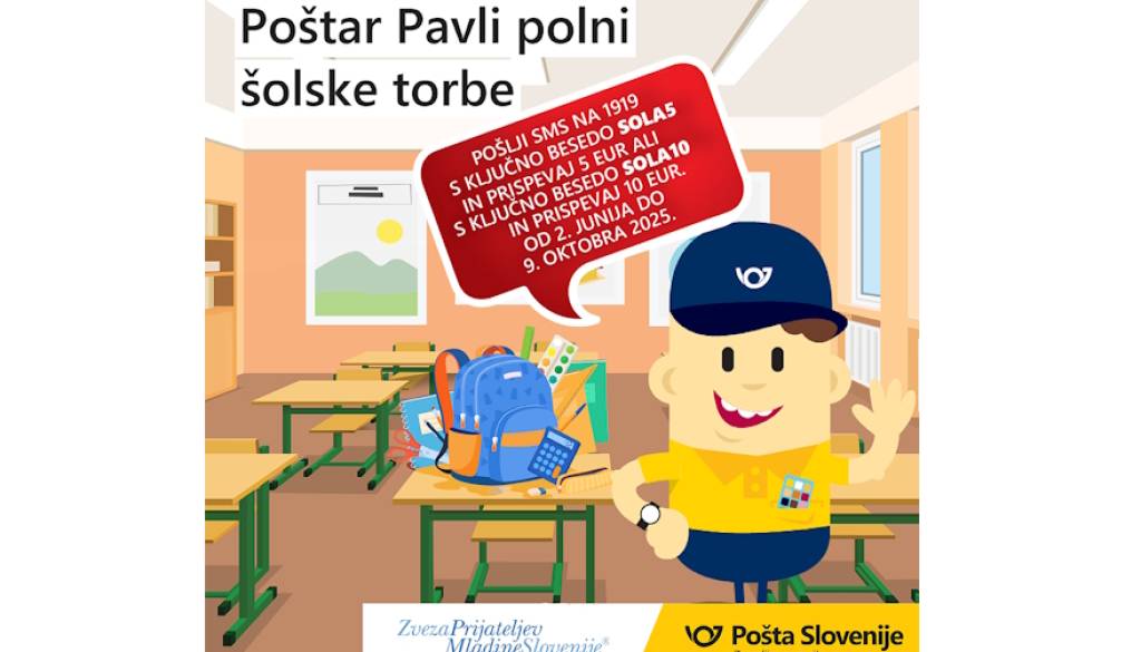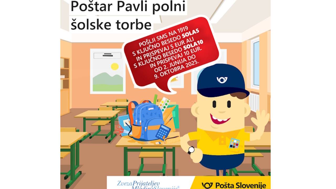 Pričela se je tradicionalna dobrodelna akcija Pošte Slovenije in Zveze prijateljev mladine Slovenije Poštar Pavli polni šolske torbe.