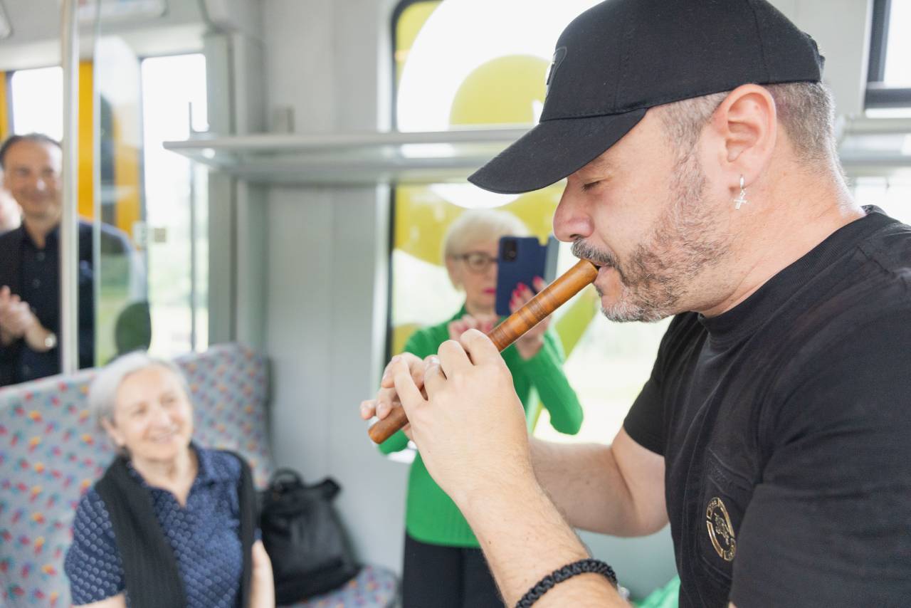 Med slikovitimi prizori slovenske pokrajine je v vagonih poseben utrip pričarala glasba Gorana Bojčevskega, klarinetista in avtorja glasbenega sloga balkan nuevo, ki združuje balkansko tradicijo z elementi klasične glasbe in jazza.