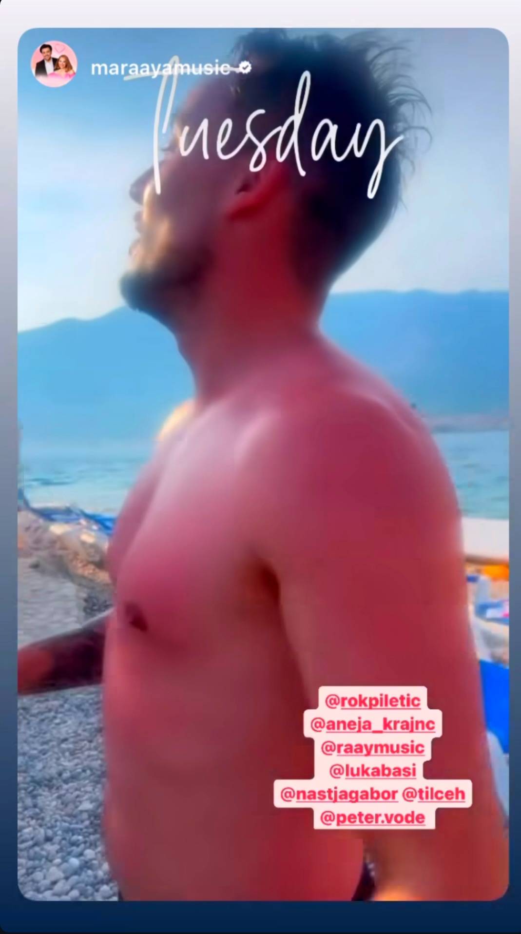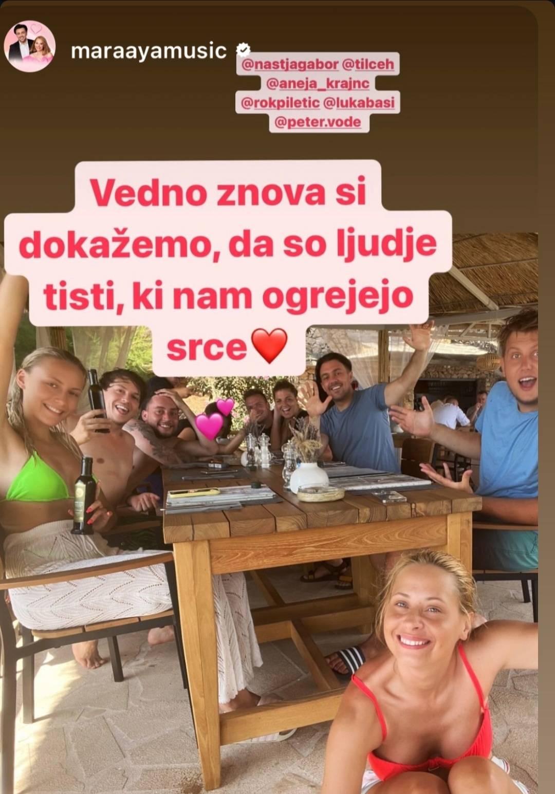 V tamkajšnjem lokalu na plaži so se družili dvojec Maraaya, pevci Rok Piletič, Peter Vode, Til Čeh, Luka Basi in njegova soproga Nastja Gabor, ki so skupaj uživali v vragolijah na plaži pod žgočim soncem.