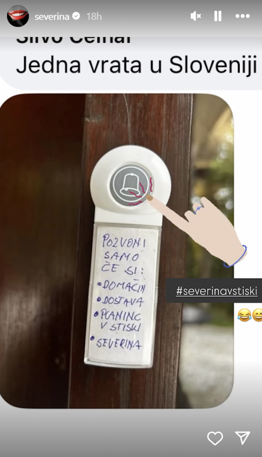 Fotografija zabavnega zapisa že nekaj dni kroži po družbenih omrežjih, očitno pa je dosegla tudi hrvaško zvezdnico, ki jo je delila tudi sama in pripisala: »Neka vrata v Sloveniji.«