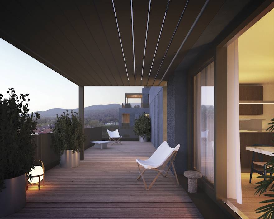 Velike zasebne terase in razgledi na vse strani neba