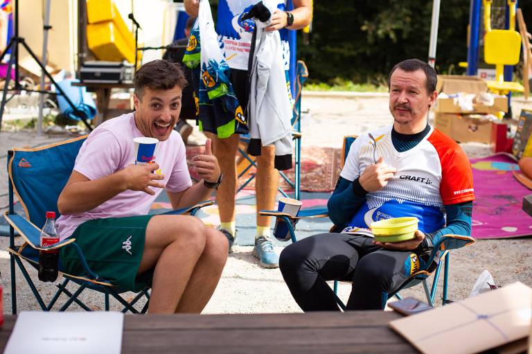 “Nekateri komiki se mi pridružijo tudi pri teku, z mano je letos tekel Žan Papič, vsa leta Klemen Bučan, v drugi izvedbi, ko smo šli po hribih pa so številni komiki hodili z mano, med njimi Stefan Šumanac, Boštjan Gorenc Pižama, Lucija Ćirović. Jan Kreuzer in Rok Škrlep sta zlezla celo na Triglav. Med ultra tekači je tudi mladinski pisatelj Žiga X Gombač.”