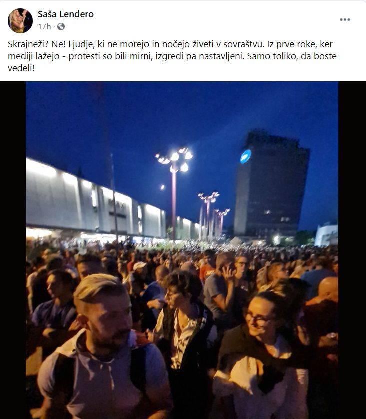 »Skrajneži? Ne! Ljudje, ki ne morejo in nočejo živeti v sovraštvu. Iz prve roke, ker mediji lažejo - protesti so bili mirni, izgredi pa nastavljeni. Samo toliko, da boste vedeli!« je zapisali v svoji Facebook objavi.