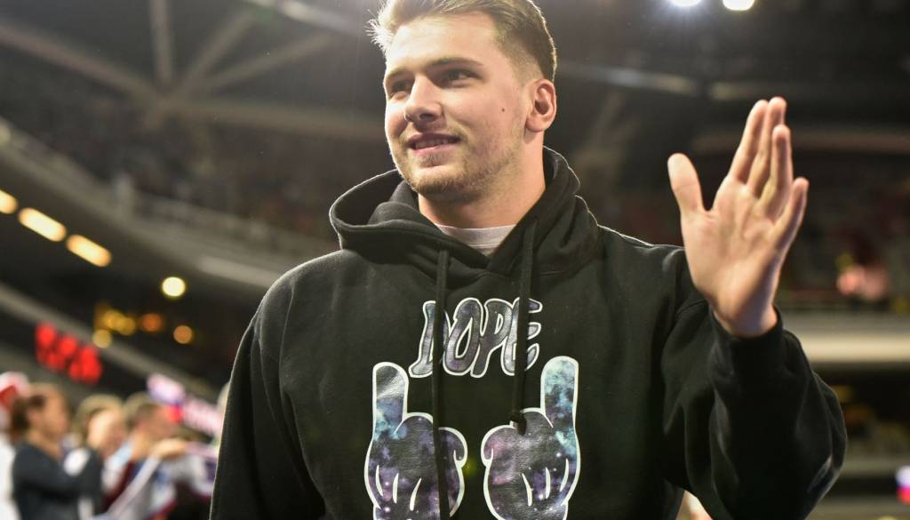Slovenski košarkarski zvezdnik Luka Dončić je sproščeno metal žogo na koš, v ozadju pa se je slišala znana pesem hrvaške skupine E.T. z naslovom Prazan stan (prazno stanovanje).