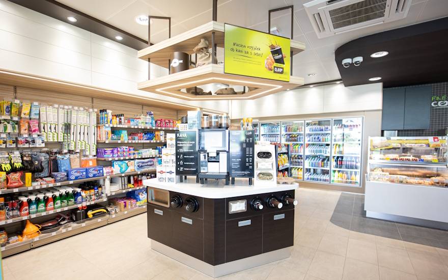 V Fresh Corner kotičkih je strankam na voljo vse, kar potrebujejo – od odlične Fresh Corner kave, ki jo lahko vzamejo tudi s seboj, do slastnih hot dogov različnih okusov, seveda pa so na voljo tudi okusni sendviči, pekovsko pecivo in druge dobrote.