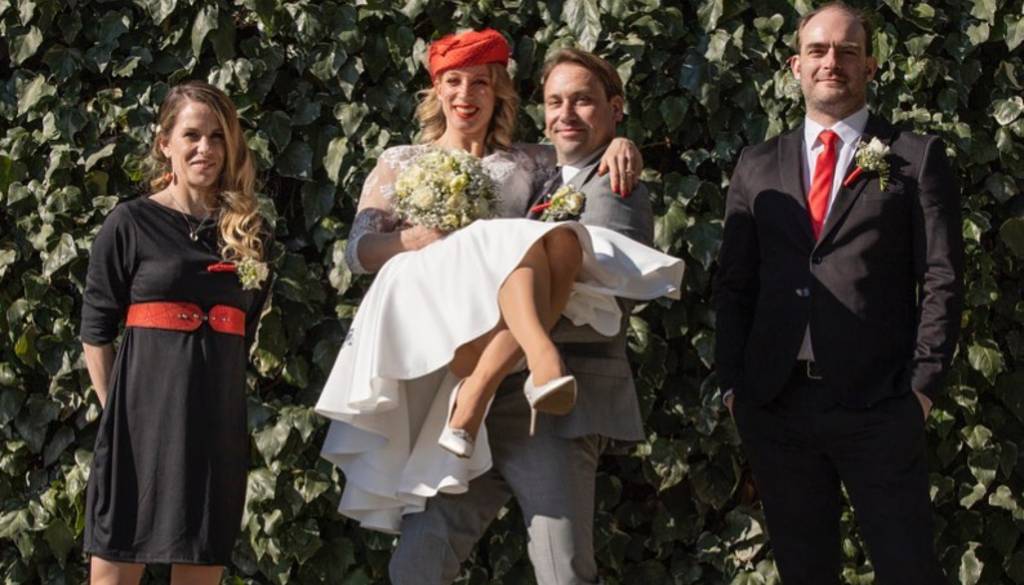 Poroka je bila ob Dravi pri restavraciji Galeb, posebnost obreda pa je bila, da so ob njima stale kar štiri priče. Nevesti sta bili priči njena hči in najboljša prijateljica, ženinu pa njegovi hčerki.