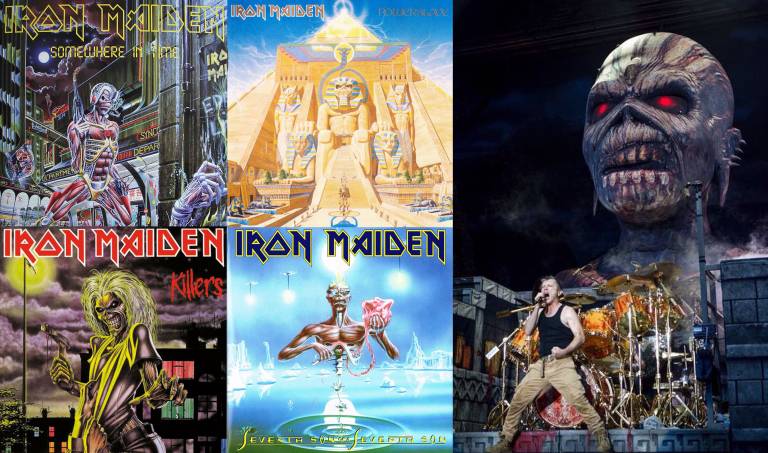 Maskoto, ki krasi vse albume Iron Maiden je konec sedemdesetih po naročilu benda ustvaril Derrick Riggs. Njegova dela so krasila celotni diskografski opus v osemdesetih (naslovnice albumov in singlov), vse do albuma Fear of the Dark iz leta 1992, pri katerem se je njihovo sodelovanje praktično zaključilo. Eddie brez priimka je ena najbolj prepoznavnih maskot v glasbenem svetu, v isti kategoriji kot ikonografski iztegnjeni jezik The Rolling Stonesov ali “war-pig” zasedbe Motörhead. Še danes je obvezen del scenografije na njihovih koncertih.