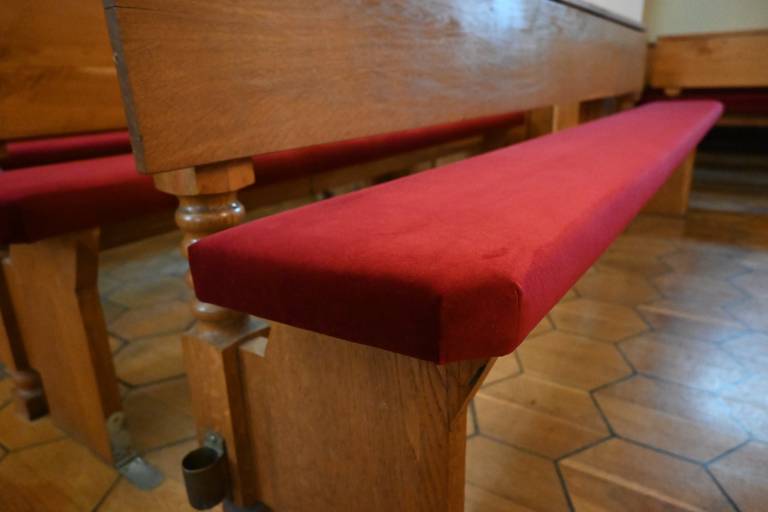 V podjetju Božič Interier so skupaj z vodstvom cerkve iskali praktično rešitev, ki bi sedalnim površinam dodala zaščito, mehkobo in toplino.