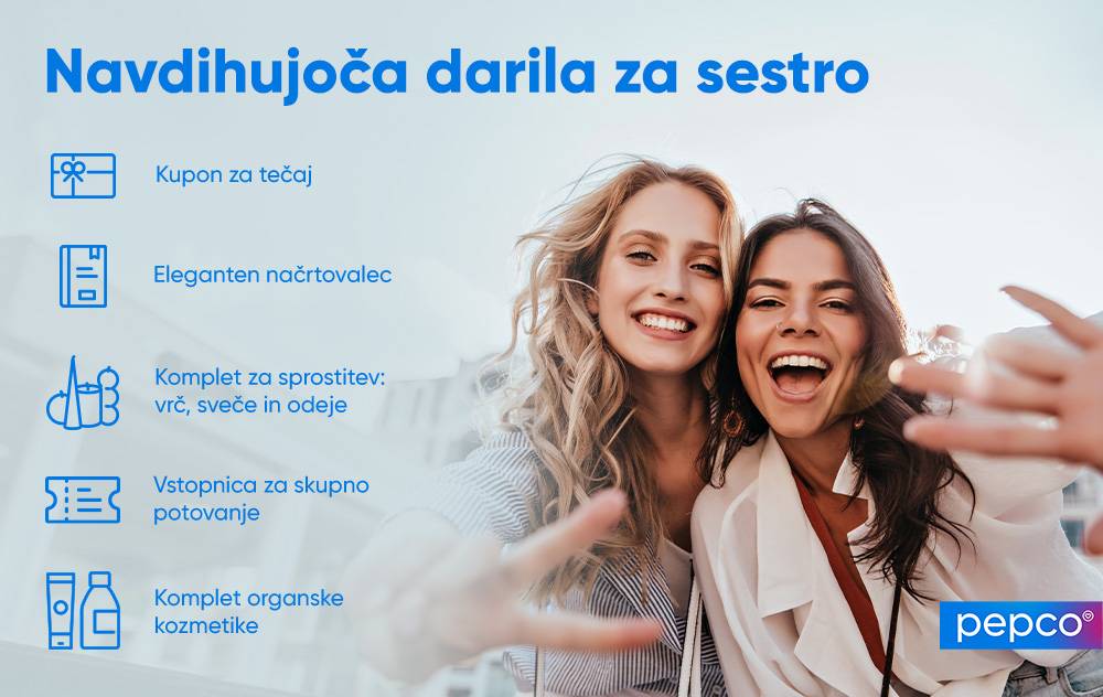 • Darila za najstnico – mlajša sestra se bo zagotovo razveselila daril, ki so v skladu s trenutnimi trendi, na primer edinstvenega nakita ali personaliziranega nahrbtnika. Najstnice bodo cenile tudi elektronske pripomočke, kot so brezžične slušalke ali powerbank.