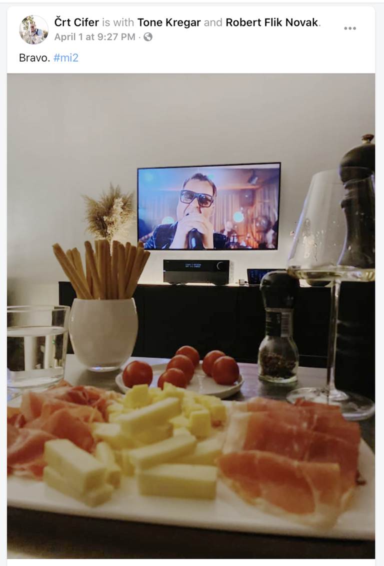 Prejemamo res dobre, navdihujoče odzive. V četrtek zvečer je bil marsikje pravi žur, bodisi v družinskem bodisi prijateljskem omizju oziroma »okavčju«. Gledali nas nsio le doma, ampak tudi na Hrvaškem, Irskem, Češkem, Srbiji, Španiji, Franciji, Belgiji in še kje. Ljudje nam sporočajo, da je sicer v začetku bilo malce nenavadno in neobičajno, a da so kmalu padli not in skupaj z nami prepevali in plesali. Ena od poslušalk je zapisala »Le kaj so si mislili sosedi«, druga se je pošalila, da je pogrešala vrste za pivo.