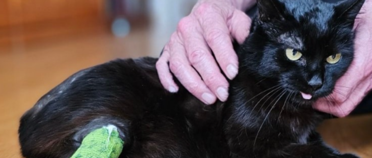 A nesreča ne počiva, čezenj je zapeljal avto in mu polomil zadnji tački. Prestal je kar tri zahtevne ortopedske operacije, postal invalidni maček.