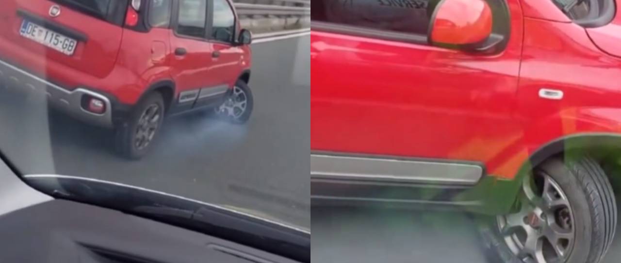 Po družbenih omrežjih je namreč zaokrožil videoposnetek avtomobila, ki vozi po levem prehitevalnem pasu z močno poškodovanim prednjim desnim kolesom.