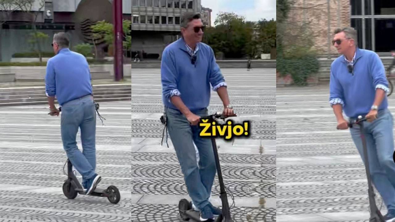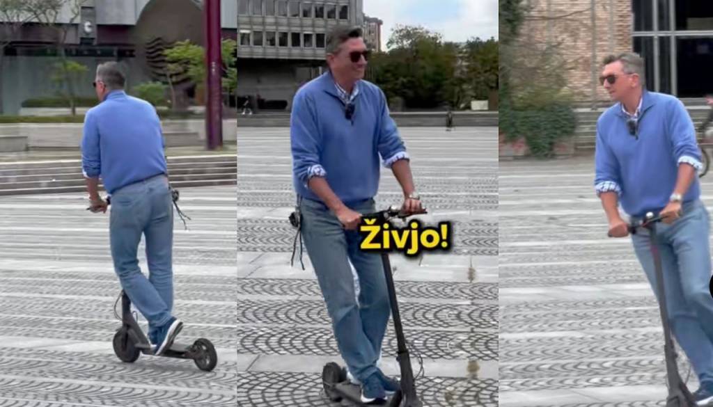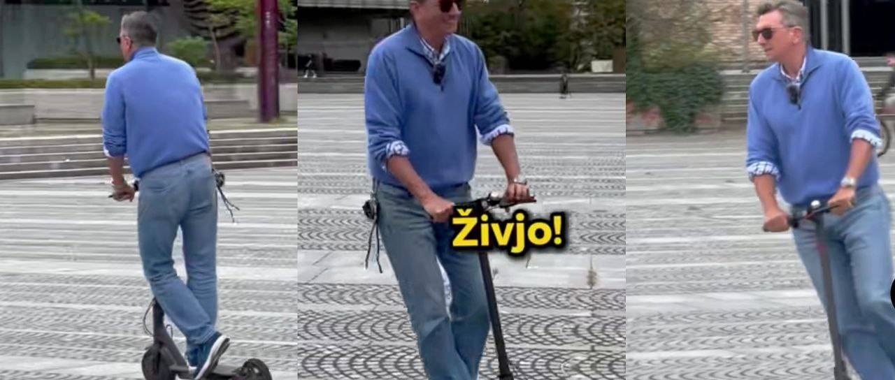 Na Trgu republike, pred parlamentom, se je na skiroju zapeljal med mimoidoče in poskrbel za prizore, ki so hitro zaokrožili po spletu.