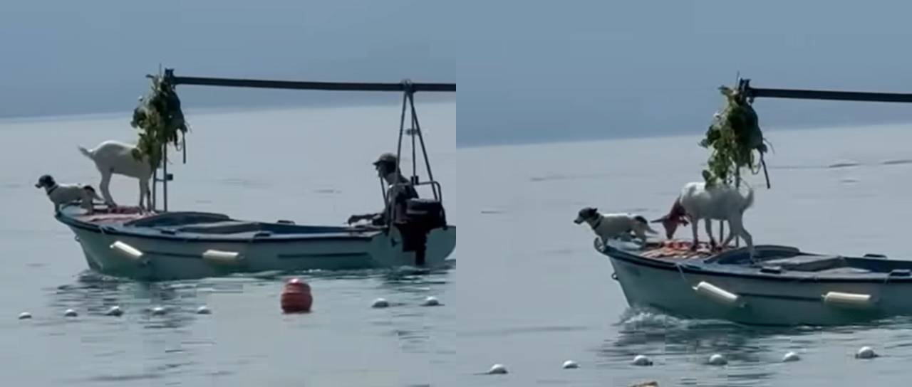 Na manjšem čolnu ob dalmatinski obali so opazili nenavadno druščino – kozo in psa, ki skupaj s svojim lastnikom plujeta po morju. Posnetek prikazuje mirno plovbo, medtem ko živali opazujejo okoliško vodno površino, lastnik pa ju varno usmerja.