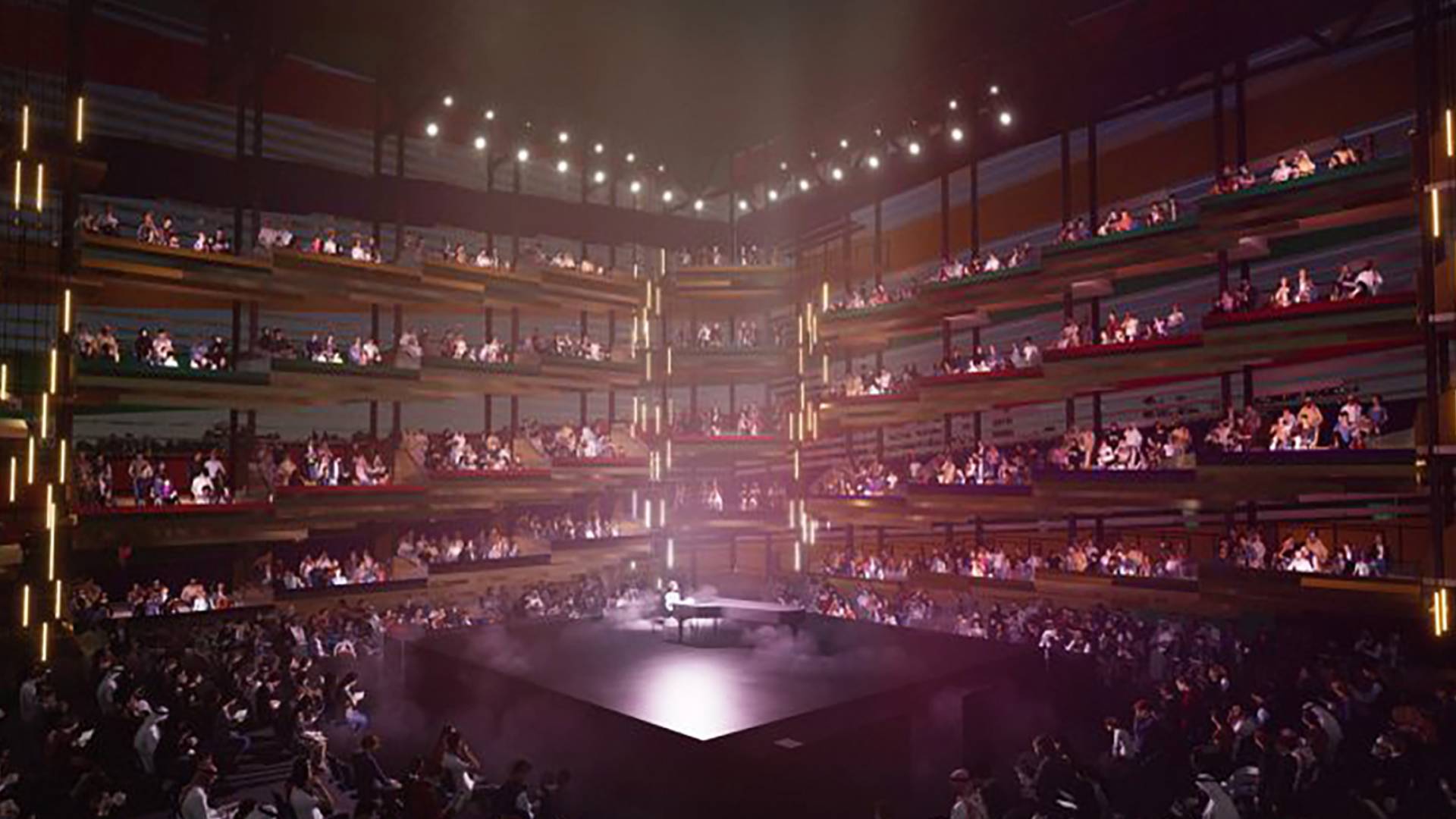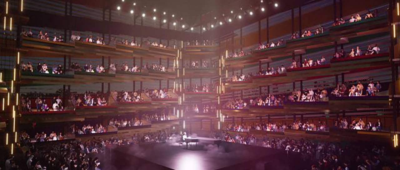 Konstrukcija sprejme med 1200 in 2400 obiskovalcev v ločenih balkončkih, ki vsak sprejme med 4 do 12 ljudi v istem mehurčku. Zračniki na vseh straneh omogočajo naravno prezračevanje, lože in balkoni pa so med sabo ločeni s prosojnim steklom. Oder je na sredi in vsi obiskovalci imajo neposreden pogled na nastopajoče.