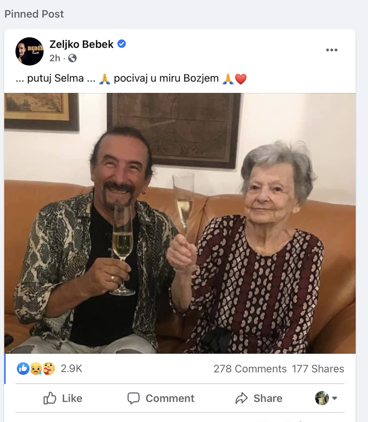 Od Selme se je poslovil tudi z objavo na svojem Facebooku, kjer je zapisal: "Potuj Selma ... počivaj v Božjem miru."