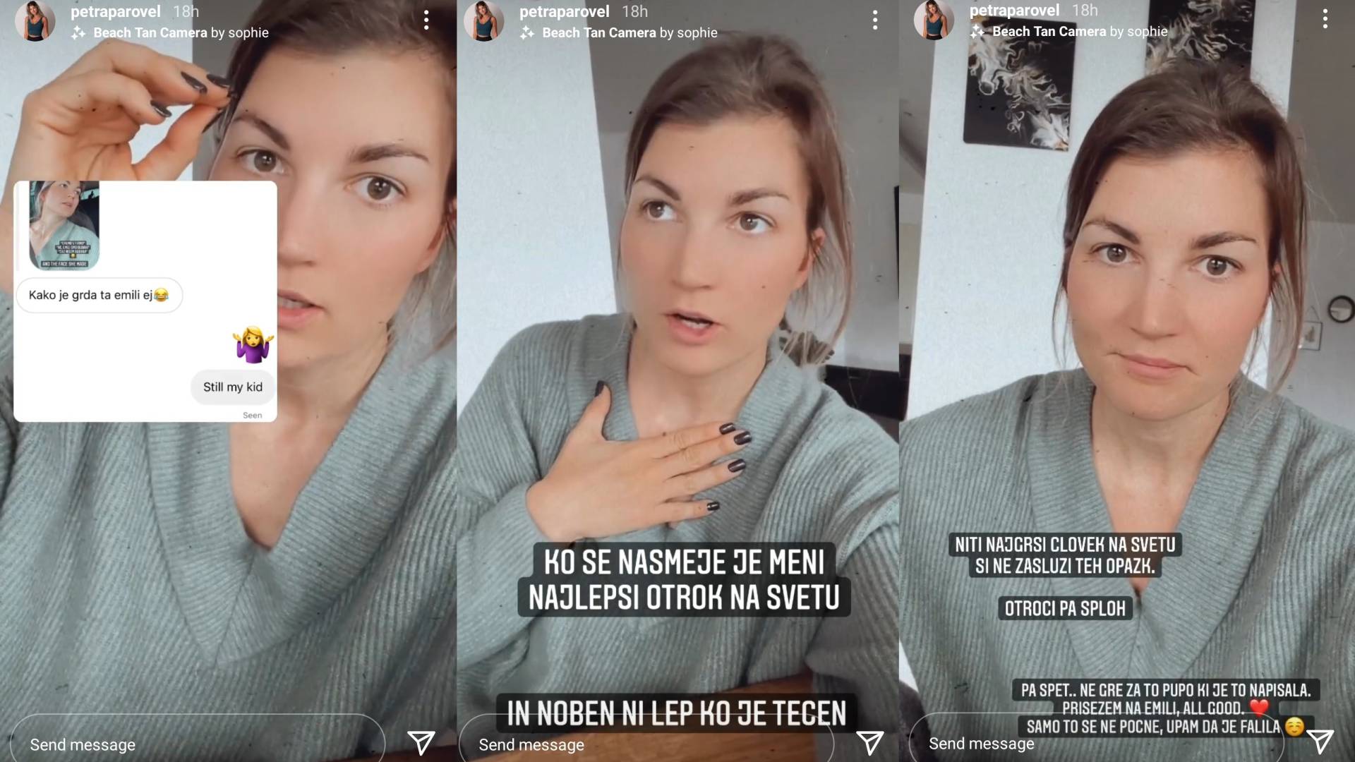 Petra je s sledilci delila zasebni komentar, ki ga je prejela o hčerki: »Kako je grda ta Emili ej.«