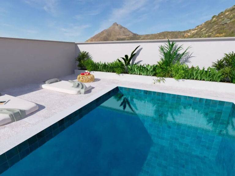 Ob bazenu je varnost na prvem mestu. Zato izberite protizdrsne zunanje ploščice, ki preprečujejo zdrse, hkrati pa so odporne na vodo in kemikalije.
