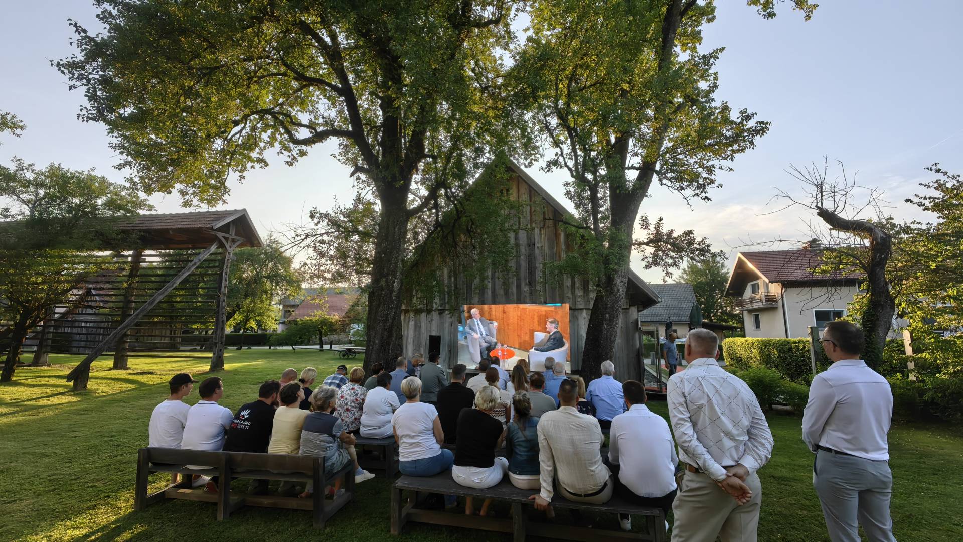 Prekaljenemu voditelju in novinarju televizije IDEA Marjanu Dori je svoje misli v skednju Škrabčeve domačije v Hrovači tokrat razvezal premier Robert Golob in predsednik stranke Gibanje Svoboda.