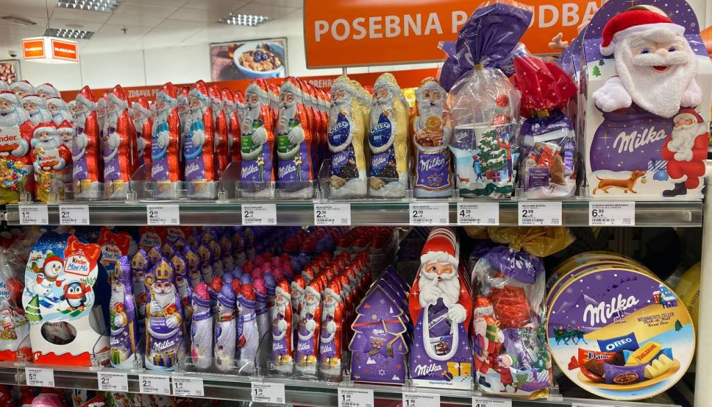 V nekaterih trgovinah je že mogoče najti božično ponudbo sladkarij in okraskov, četudi sta do božiča še več kot dva meseca.