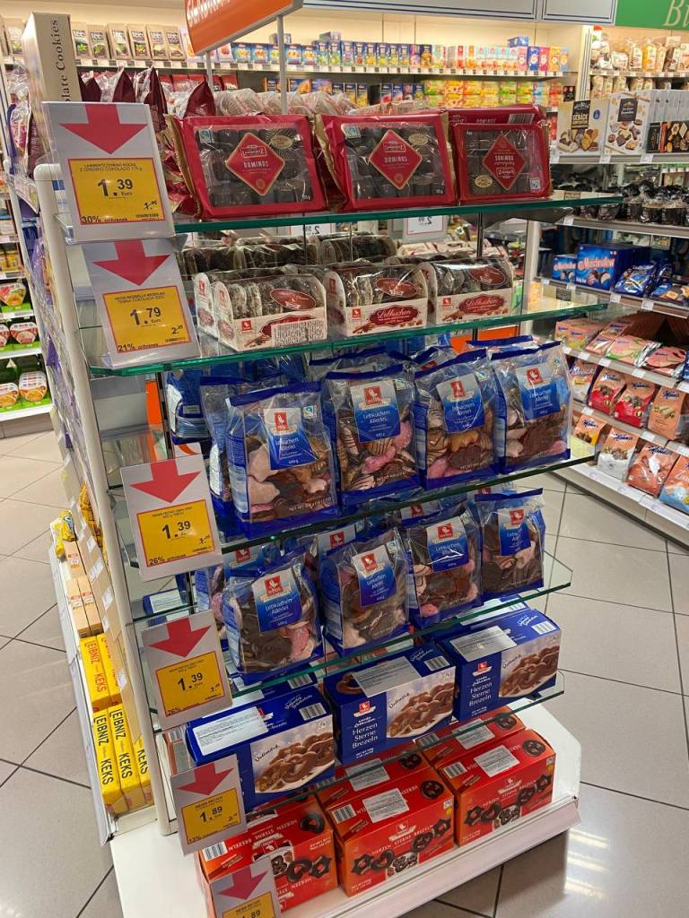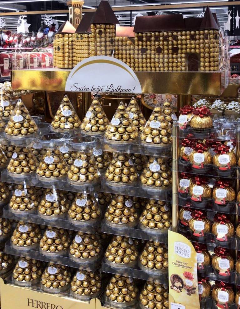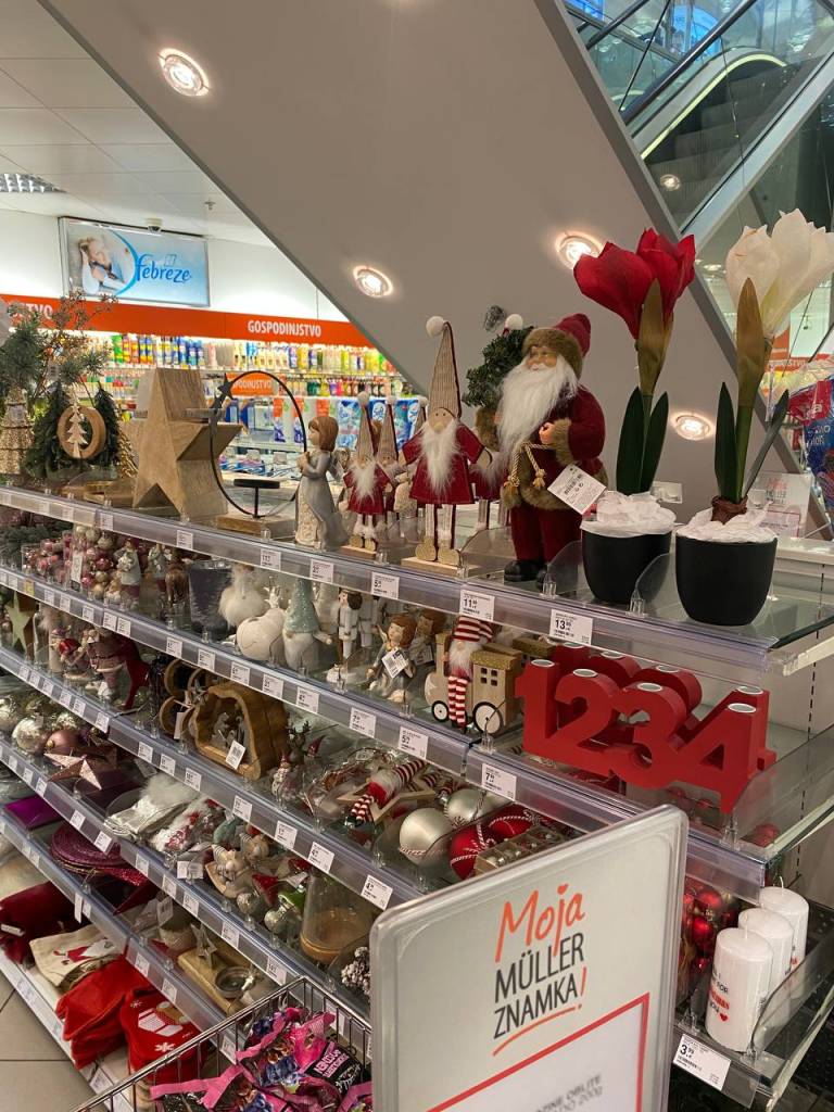 Mi smo obiskali dve ljubljanski Müller poslovalnici, v BTC in centru mesta – v slednjem je božičnim sladkarijam, kot so adventni koledarji, božički, snežaki, medenjaki ... že posvečena skoraj polovica nadstropja s hrano.